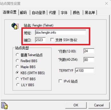 以Cterm为例,可支持Telnet和SSH两种方式(注意端口不同)。本站已提供内置字符转